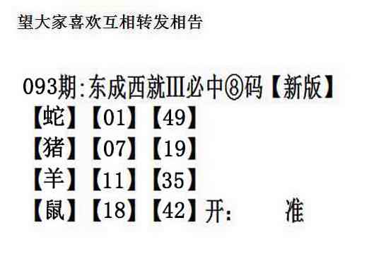 | 主题 :093期:另版【东成西就四肖8码】 |