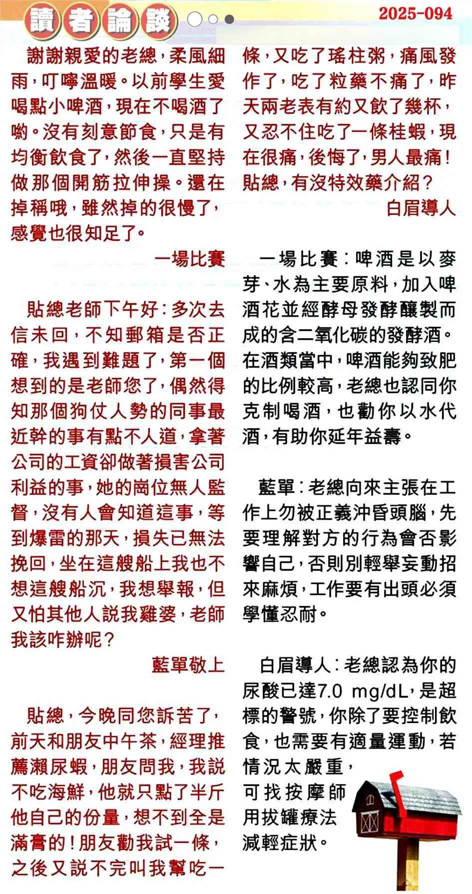 | 主题 :094期:彩民推荐贴信读者论坛 |