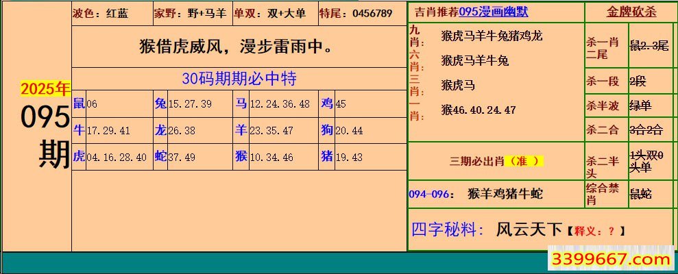 | 主题 :095期:小鱼儿30码期期中+幽默猜测 |