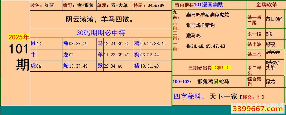 主题 :101期:小鱼儿30码期期中+幽默猜测