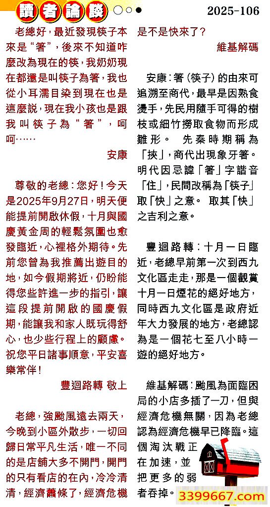 主题 :106期:彩民推荐〖貼信讀者論壇〗 |