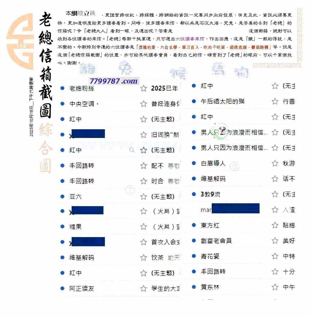 | 主题 :112期:六合皇金句/老总论码/萧公子/林大师/五行夺码/老总信箱截 |