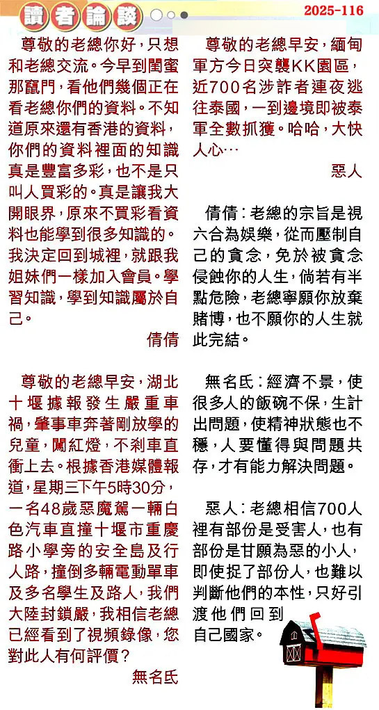 | 主题 :116期:彩民推荐贴信读者论坛 |