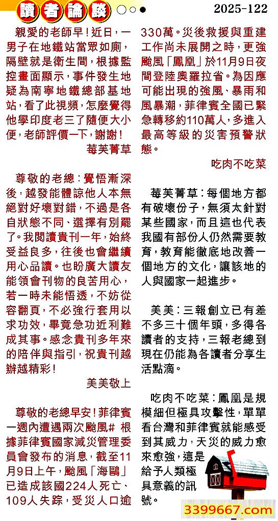 | 主题 :122期:彩民推荐〖貼信讀者論壇〗 |