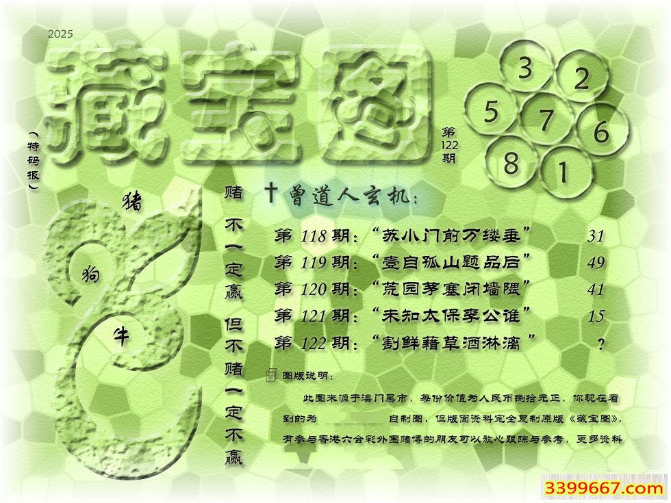 主题 :122期藏寶圖 新:割鲜籍草酒淋漓 老:日暮沙场飞作灰 禁:猴 禁:0尾