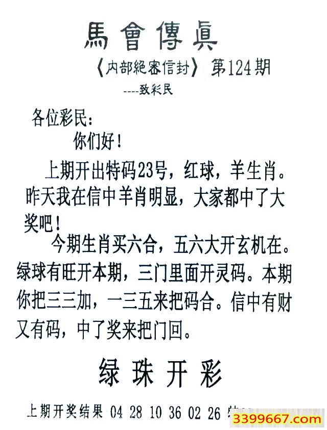 主题 :124期:首发推荐:≮馬會傳眞≯→(香港正版)