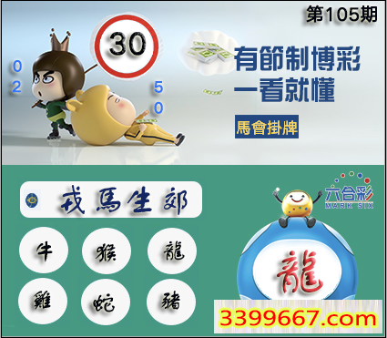 105期正版彩图挂:30 爆:龙 挂牌成语:戎马生郊 挂牌出肖:牛猴龙鸡蛇猪