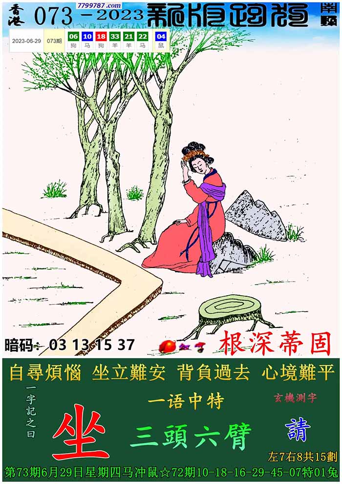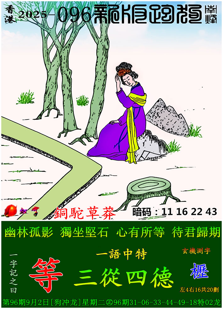 主题 :096期:新版跑狗一字記之曰【等】 玄機測字:【櫪】